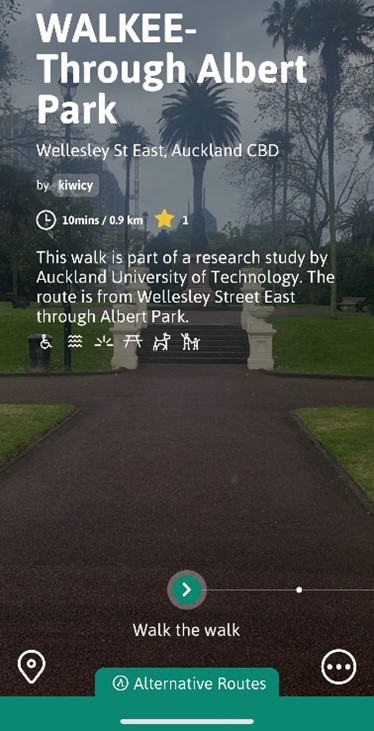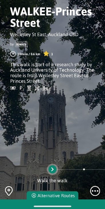 The walks are guided by the free Go Jauntly app, including a few questions about the walking experience, before, during, and after the walk.