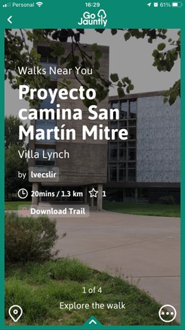 - Selecciona la ruta que te gustaría recorrer. En este caso elije: ¨Proyecto San Martin Camina Mitre¨ o ¨Proyecto San Martin Camina Plazas¨. Puedes realizar una primero y luego la otra!